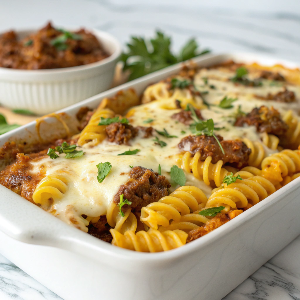 Start by preheating your oven to 350°F, then grease a 9×13-inch baking dish with butter to ensure your casserole doesn’t stick and has a touch of extra flavor around the edges. Next, heat a large skillet on medium and cook the ground beef along with the finely chopped onion. Cook until the beef is browned and the onion softens, then drain any excess fat to keep the casserole from being greasy. Add minced garlic and cook for one more minute until fragrant; this simple step fills your kitchen with such an inviting aroma.