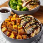 These BBQ Chicken Sweet Potato Bowls are a healthy and delicious meal combining tender BBQ-seasoned chicken with roasted sweet potatoes and fresh toppings. Perfect for a balanced dinner, this recipe features baked sweet potatoes filled with flavorful BBQ chicken, corn, black beans, avocado, and a hint of lime for a delightful and nutritious bowl.
