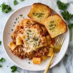 This Beef Stroganoff Casserole combines tender ground beef, sautéed onions and garlic, and a creamy sauce made with sour cream and mushroom soup. Mixed with egg noodles and topped with buttery panko breadcrumbs and mozzarella cheese, this hearty casserole is baked until golden and bubbly, making it a perfect comforting weeknight meal for the whole family.