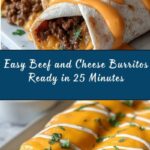 A quick and delicious recipe for beef and cheese burritos featuring seasoned ground beef, refried beans, and melted cheddar and Monterey Jack cheeses, wrapped in warm flour tortillas and toasted to golden perfection.