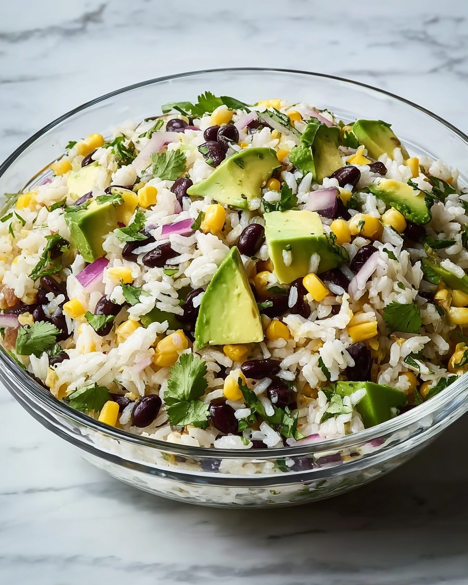 A vibrant and refreshing Black Bean Corn Avocado Salad that combines creamy avocado, hearty black beans, sweet corn, and fluffy white rice tossed in a zesty lime dressing. Perfect as a light meal or a side dish, this salad is packed with flavor and texture, ready in just 30 minutes.