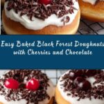 Delight in these moist and tender Black Forest Doughnuts that combine rich cocoa flavor with juicy cherries and melty chocolate chips. Baked to perfection, these doughnuts offer a delicious homemade treat inspired by the classic Black Forest cake, perfect for breakfast, dessert, or a snack.
