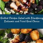 This Blackberry Balsamic Grilled Chicken Salad with Crispy Fried Goat Cheese is a delightful combination of savory and sweet flavors, featuring tender grilled chicken marinated in a blackberry balsamic dressing, paired with fresh berries, crunchy pecans, and crispy golden fried goat cheese. Perfect for a gourmet summer salad, it offers a vibrant and satisfying meal that balances juicy grilled protein with fresh greens and a tangy, fruity dressing.