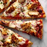 Buffalo Chicken Pizza offers a fiery twist on the classic favorite by combining crispy, buffalo-sauced chicken with melted fresh mozzarella, spicy jalapeños, and tangy red onions on a golden, homemade-style crust. This easy-to-make pizza is perfect for game day or a spicy weeknight dinner, served with cooling ranch or blue cheese dressing for the perfect balance of flavors.