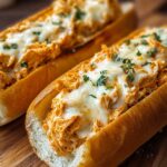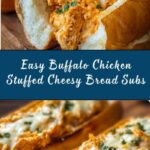 These Buffalo Chicken Stuffed Cheesy Bread Subs are a delicious and satisfying meal featuring tender shredded chicken tossed in spicy buffalo sauce, creamy ranch, and melted cheeses, all stuffed inside warm hoagie rolls. Perfect for cozy dinners or game day snacks, these subs combine bold flavors with a crispy, cheesy bread exterior.