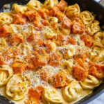 Gently reheat leftovers in a skillet over low heat, stirring frequently. Adding a little chicken broth, cream, or milk helps regain the original creamy consistency without drying out the chicken or tortellini.