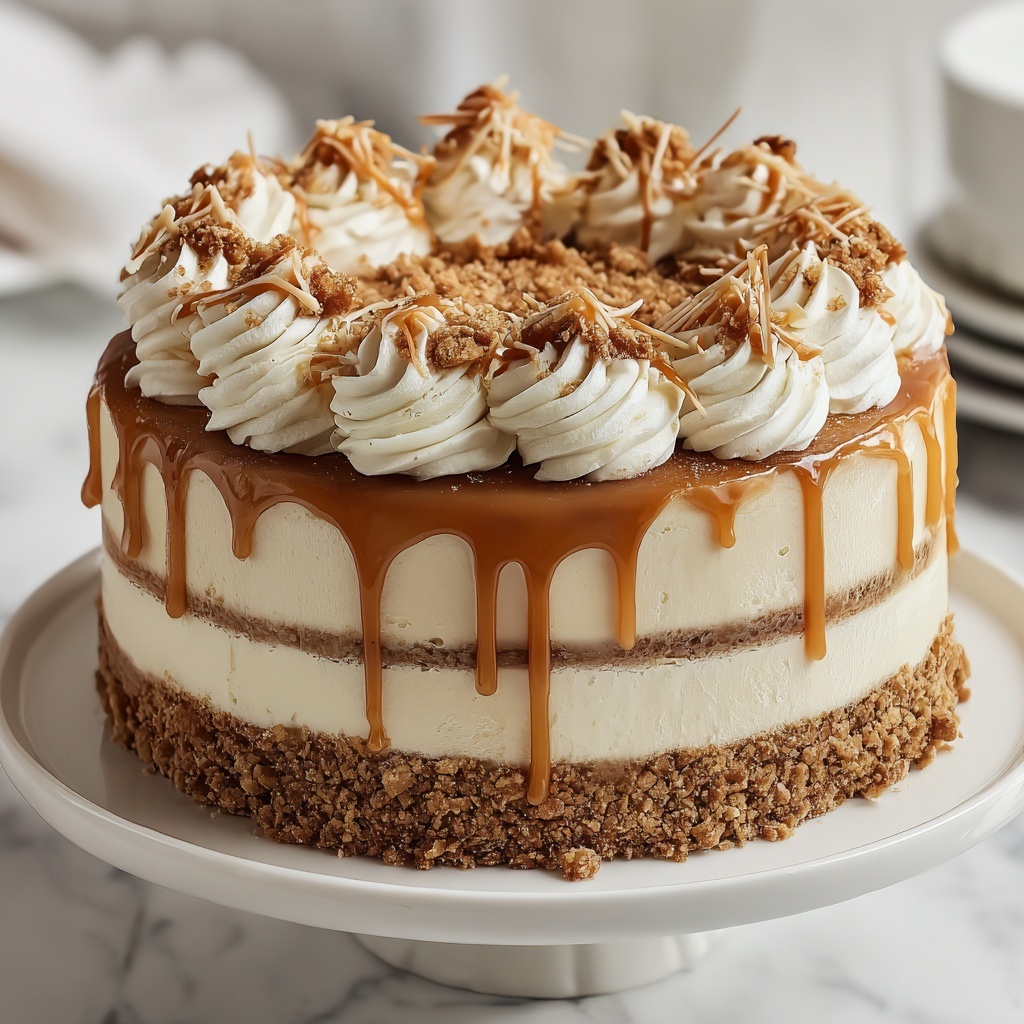 This Caramel Crunch Cake is a decadent American dessert perfect for caramel lovers, combining moist cake layers with rich caramel sauce, crunchy toffee bits, and optional pecans for extra texture. With its luscious caramel drizzle topping and a tender crumb, this easy-to-make cake is ideal for celebrations or special occasions.