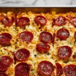 This Cheese Tortellini Pepperoni Pizza Casserole combines the comforting flavors of pizza with the ease of a baked pasta dish. Featuring cheese-filled tortellini, savory pepperoni, and a rich marinara sauce topped with melted mozzarella and Parmesan, it’s a delightful family-friendly meal perfect for busy weeknights or make-ahead dinners.