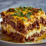 This Cheesy Loaded Meatloaf Casserole is a comforting and hearty dish that combines the classic flavors of meatloaf with creamy mashed potatoes, melted cheddar cheese, and crispy bacon. Perfect for an easy weeknight dinner, it’s baked in one dish for minimal cleanup and maximum flavor.