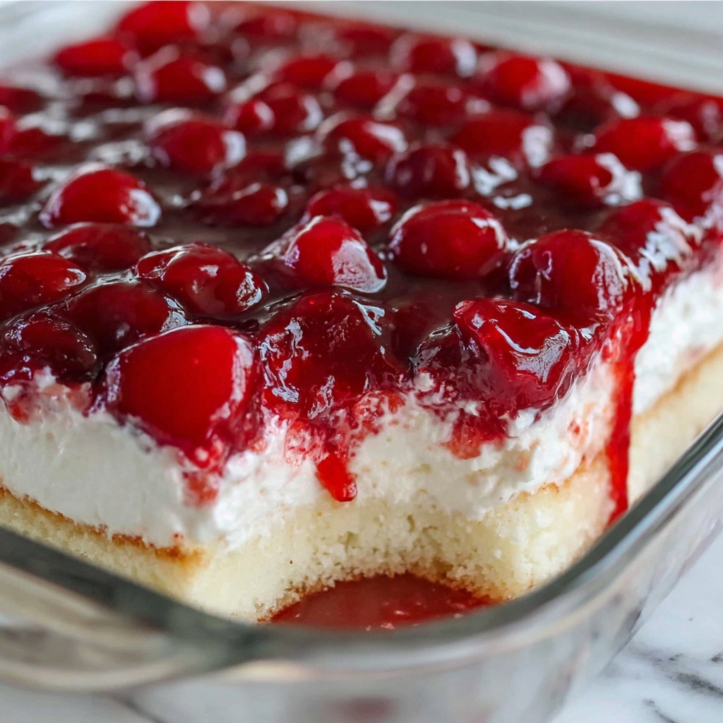 This dessert’s magic comes from a few essential ingredients that play perfectly together—each bringing its own texture, richness, or pop of flavor. From the airy angel food cake to the tangy-sweet cherry topping, every bite is a treat.