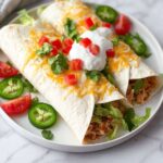 These Chicken Lime Enchiladas combine tender shredded chicken with a zesty lime-infused sauce and melted Monterey Jack and cheddar cheese, all wrapped in warm flour tortillas. Baked to bubbly perfection with a tangy, creamy sauce, this dish is garnished with fresh cilantro, lettuce, tomato, and avocado for a deliciously satisfying Mexican-inspired meal.