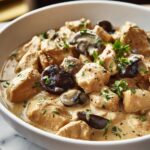 This Chicken Mushroom Stroganoff is a creamy and comforting dish featuring tender chicken pieces sautéed with mushrooms and onions, simmered in a rich sour cream and Dijon mustard sauce. Served over egg noodles or rice, it makes a delicious and easy weeknight dinner inspired by Russian-American cuisine.