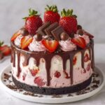 This Chocolate Covered Strawberry Ice Cream Cake is a decadent dessert combining rich chocolate cake layers with creamy strawberry ice cream, all enveloped in a luscious chocolate ganache and adorned with fresh strawberries and chocolate shavings. Perfectly balanced and refreshing, this cake makes an ideal treat for warm days or special occasions.