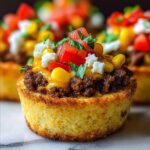 Topping your Cornbread Taco Muffins with fresh cilantro and a spoonful of salsa instantly brightens them up. These garnishes add fresh herbal notes and a tangy kick that complements the cornbread’s sweetness and the meat’s spice perfectly.