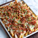 Crab Rangoon Nachos combine the beloved flavors of crab rangoon with the fun and shareable format of nachos. Crispy wonton or tortilla chips are layered with a creamy mixture of crab meat, cream cheese, sour cream, and seasonings, then topped with melted mozzarella and cheddar cheeses. Finished with a drizzle of sweet chili sauce and fresh green onions and cilantro, this appetizer offers a perfect balance of creamy, savory, and tangy flavors ideal for game day or casual gatherings.