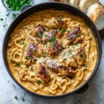 This Creamy Cajun Chicken Pasta is a luscious and flavorful dish featuring tender chicken breasts seasoned with Cajun spices, linguine pasta, and a rich, creamy sauce made with butter, garlic, tomatoes, heavy cream, and parmesan cheese. Ready in just 30 minutes, it’s a perfect weeknight meal that delivers a delightful balance of spice and creaminess, garnished with fresh parsley for a burst of color and freshness.