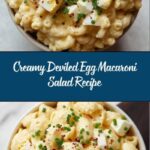 This Creamy Deviled Egg Macaroni Salad combines tender elbow macaroni with chopped hard-boiled eggs and a flavorful, creamy dressing. Enhanced by dill pickle relish, celery, and red onion, it’s a perfect dish for picnics, potlucks, or a satisfying side on warm days. The salad is chilled to meld the flavors beautifully, offering a classic twist on traditional macaroni salad with a deviled egg-inspired kick.