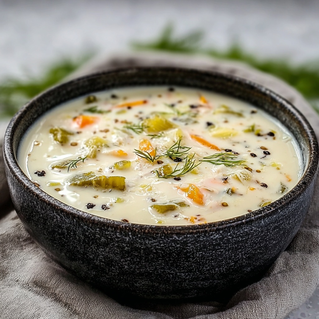 Creamy Dill Pickle Soup (Zupa Ogórkowa) is a comforting Polish-inspired dish featuring tender potatoes, grated carrots, and tangy dill pickles in a smooth, creamy broth. This hearty soup is enriched with sour cream and flavored with fresh or dried dill, creating a perfect balance of creamy and tangy notes ideal for a warming meal.