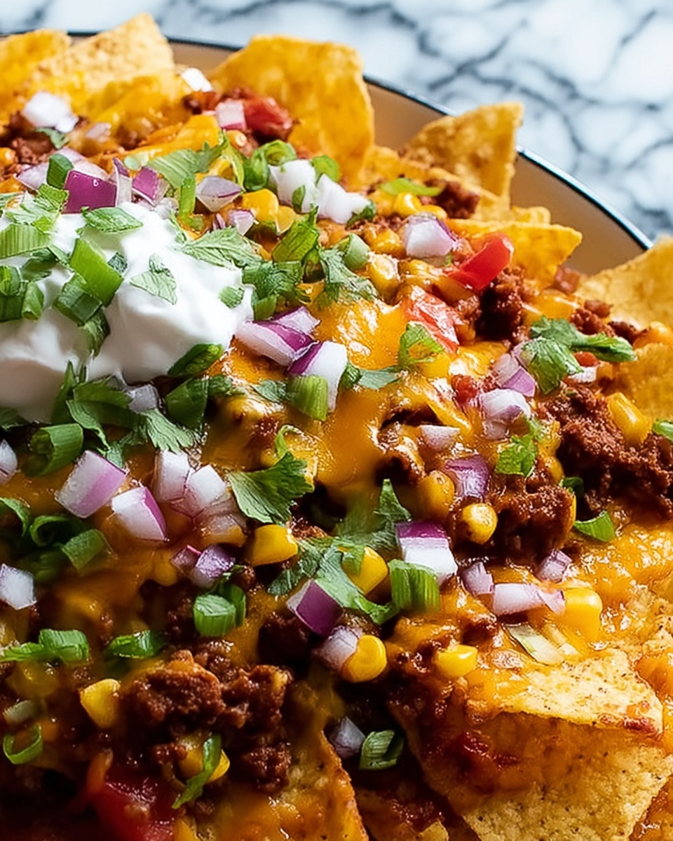 Garnishes truly bring this dish to life. The crunch of extra Fritos on top adds texture contrast, while fresh green onions give a lovely pop of brightness. Sour cream is an absolute must—it cools down the heat and adds creaminess that balances the bold spices. Jalapeño slices are fantastic for anyone who wants a spicy kick!