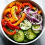 Slice the cucumbers into thin rounds or half-moons for easy tossing and a delicate crunch. Chop your sweet bell peppers into bite-sized pieces to showcase their vibrant colors and keep every bite balanced and delightful.
