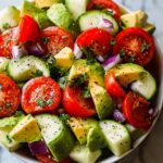 A refreshing and vibrant cucumber tomato avocado salad perfect for a light, healthy meal or side dish. This salad combines crisp cucumbers, juicy cherry tomatoes, creamy avocados, and a zesty lemon dressing with fresh herbs for bright Mediterranean flavors that are quick to prepare and ideal for warm weather.