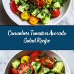 A refreshing and vibrant Cucumbers Tomatoes Avocado Salad perfect for a healthy Mediterranean-inspired meal. This simple no-cook salad combines crisp cucumbers, juicy cherry tomatoes, creamy avocados, and a zesty lemon and red wine vinegar dressing, garnished with fresh herbs for added flavor. Ideal for quick lunches or light dinners, it’s naturally gluten-free and vegetarian.