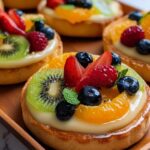 Once the cookie bases are cool, spread a generous layer of the cream cheese frosting over each one. Then comes the fun part: arranging the sliced strawberries, blueberries, kiwi, and mandarin orange segments on top to mimic the colorful appearance of Easter eggs. This artistic step allows you to be creative and make each fruit pizza uniquely beautiful. If you want, sprinkle shredded coconut over the top for an extra touch of flair and texture.
