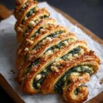 This Easy Christmas Tree Spinach Feta Bread Recipe is a festive, visually stunning appetizer perfect for holiday gatherings. Featuring layers of flaky puff pastry filled with a flavorful mixture of cooked spinach, feta, mozzarella, and aromatic spices, it’s both savory and satisfying. The pastry is shaped and twisted to resemble a Christmas tree, making it an eye-catching centerpiece that pairs wonderfully with marinara or tzatziki dips.