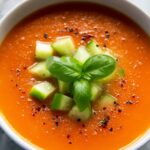 To elevate your gazpacho experience, sprinkle freshly chopped basil on top right before serving. The herb adds a burst of color and a fragrant freshness that complements the tomato base perfectly. You can also add a drizzle of extra virgin olive oil or a few slices of crunchy cucumber for delightful texture contrast.