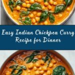 This Easy Indian Chickpea Curry is a flavorful, creamy, and comforting dish made with a blend of aromatic spices, coconut milk, and tender chickpeas. Perfect for a quick vegetarian meal, this curry combines traditional Indian spices for a delicious and wholesome dinner ready in just 30 minutes. Serve it with steamed rice or warm naan bread for a satisfying meal.