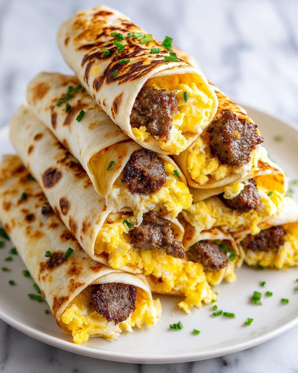 Lay each warm tortilla flat and add about two tablespoons of cooked sausage, followed by a generous spoonful of scrambled eggs. Sprinkle shredded cheddar cheese over the filling to add melty, luscious texture. These layers combined make each bite delightfully hearty and cheesy.