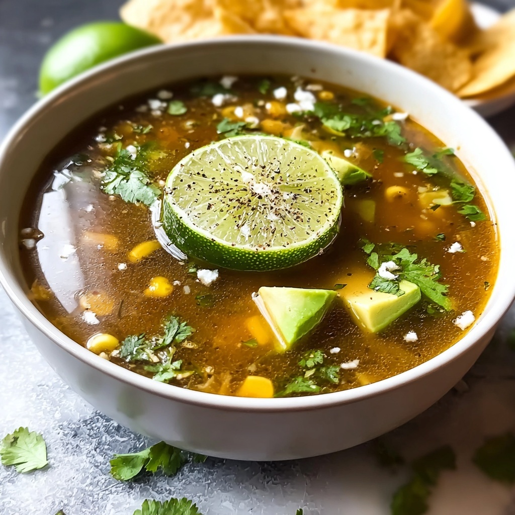 Finish the soup by adding fresh lime juice to add a lively brightness. Season with salt and pepper to balance the savory and tart flavors perfectly. Lastly, fold in chopped fresh cilantro to add a fresh herbal note that makes every spoonful sing.