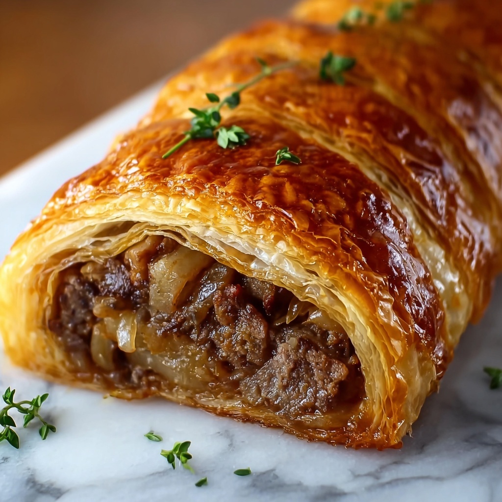 French Onion Beef Roll-Ups combine tender thinly sliced flank steak with rich caramelized onions, melted Gruyère cheese, and a savory wine-infused sauce. This elegant yet accessible dish is perfect for a comforting dinner, featuring layers of flavor and a luscious sauce that perfectly complements the beef.