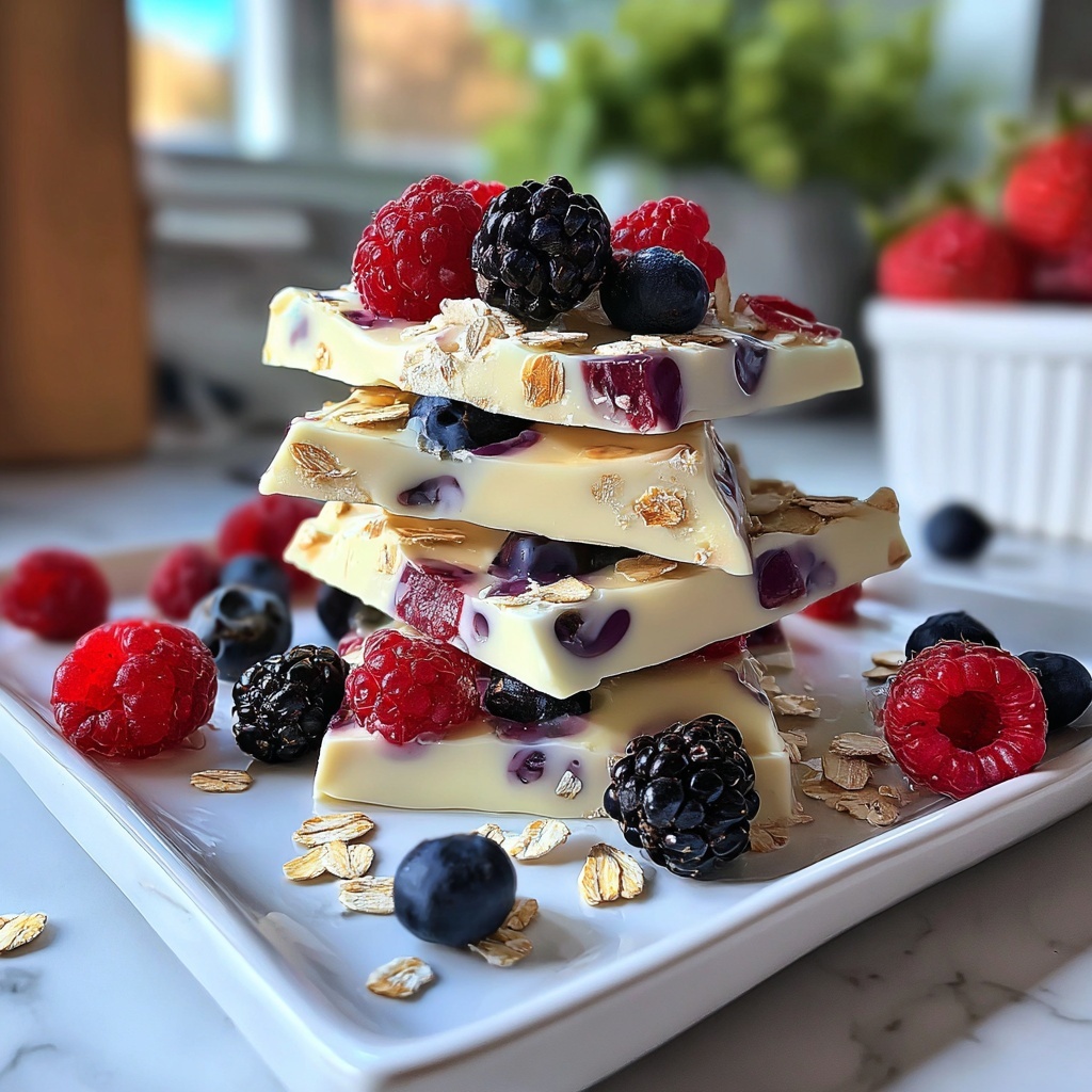To elevate your Frozen Yogurt Bark with Mixed Berries and Granola Recipe, consider garnishing with extra fresh berries, a drizzle of honey, or a sprinkle of chia seeds. These additions not only enhance the visual appeal but boost flavor and nutritional value.