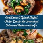 This Goat Cheese & Spinach Stuffed Chicken Breast recipe features tender chicken breasts filled with a creamy goat cheese and spinach blend, served alongside caramelized onions and sautéed baby bella mushrooms. Baked to juicy perfection, this dish offers a delightful mix of savory flavors and textures, perfect for a satisfying dinner.