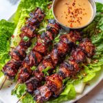 - Serve: Arrange grilled skewers over a bed of fresh lettuce and serve alongside the prepared peanut sauce. Sprinkle crushed peanuts on top if desired for added texture and taste.