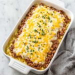 Spread the hearty mixture evenly into your warm baking dish. Then sprinkle the remaining cheddar cheese evenly on top. This layer ensures perfectly melted, bubbly cheese that covers the casserole and locks in moisture, giving every bite a gooey, cheesy hug.