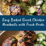 These Herby Greek Chicken Meatballs are a delicious and healthy Mediterranean-inspired dish, packed with fresh herbs, feta cheese, and fragrant lemon zest. Baked to golden perfection, they offer a tender and flavorful bite that’s perfect as a main course or appetizer. Serve warm with traditional tzatziki sauce, pita bread, or over a refreshing Greek salad for a complete meal.