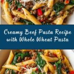 9. Toss Pasta in Sauce: Add the cooked whole wheat pasta directly into the skillet. Gently toss the pasta to coat it thoroughly with the creamy beef sauce.