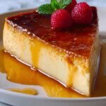 A scoop of vanilla ice cream or a drizzle of caramel sauce on the side complements the flan cake beautifully. For a lighter balance, a simple fresh fruit salad with citrus notes can cleanse the palate between bites.
