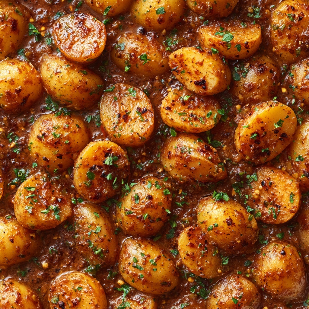 Once the potatoes are beautifully roasted, transfer them back into the large bowl and pour the honey mustard sauce over them. Toss gently to coat each potato evenly with the sticky, tangy glaze. Return them to the baking sheet and roast for an additional 5–8 minutes so the sauce caramelizes slightly, maximizing flavor and texture.