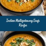 A hearty and flavorful Indian Mulligatawny Soup combining aromatic spices, vegetables, lentils, and creamy coconut milk. This comforting soup is easy to prepare and perfect for a satisfying meal, garnished with roasted cashews and fresh herbs.