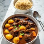 For a fun twist, you can serve the oxtail stew in individual deep bowls layered atop coconut rice, garnished with a side of steamed callaloo or sautéed greens. another crowd-pleasing idea is to turn leftovers into a flavorful Jamaican oxtail sandwich packed with tender meat and drizzled with a touch more of that rich sauce.