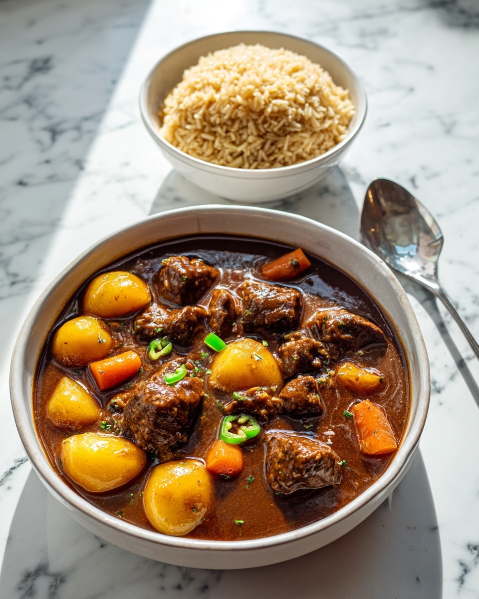 • Browning sauce: Gives the oxtail a rich color and enhances the depth of the stew.