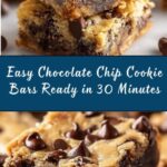 - Cool and Serve: Allow the cookie bars to cool completely in the pan. Once cooled, cut into squares and serve. Enjoy these quick and satisfying chocolate chip bars!