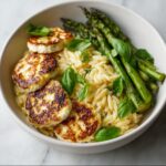 This vibrant Lemon Orzo with Asparagus and Halloumi recipe is a delightful combination of tender orzo pasta, crisp asparagus, and golden, grilled halloumi cheese. Enhanced with fresh lemon juice, garlic, and herbs, it offers a bright, fresh, and satisfying meal perfect for weeknight dinners or casual gatherings.