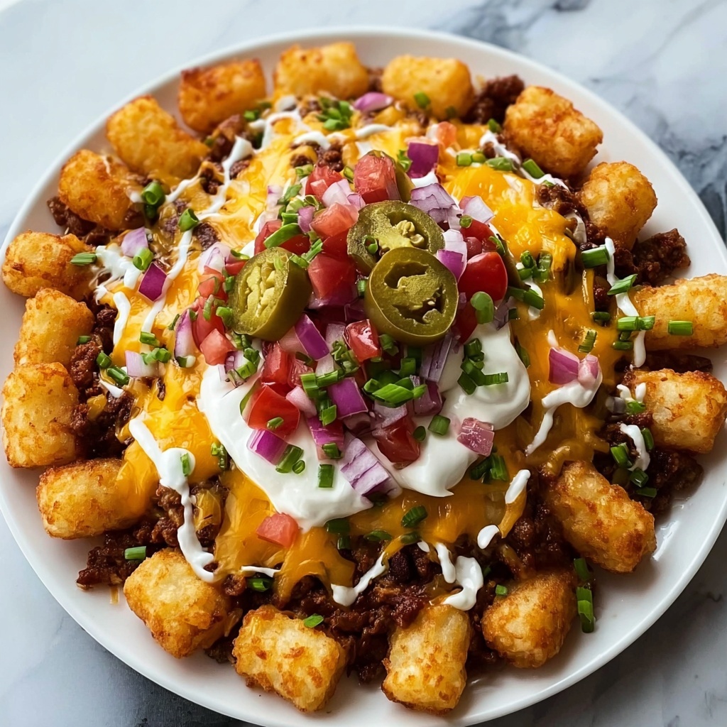 To reheat leftovers, spread the nachos on a baking sheet and warm them in a preheated 350°F oven for about 10 minutes. This helps restore crispiness to the tater tots while melting the cheese again. Avoid microwaving as it can make the tots soggy.