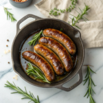 Lower the heat slightly and drizzle on the real maple syrup, then sprinkle the freshly minced rosemary over the sausages. Gently toss or turn them in the skillet so each link gets coated with the sticky, fragrant glaze. The syrup will caramelize a bit, creating that irresistible finish.