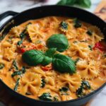 Marry Me Chicken Pasta is a creamy, flavorful dish featuring tender seared chicken thighs and farfalle pasta tossed in a rich sauce made with sun dried tomatoes, parmesan, and spinach. This quick and satisfying skillet meal combines savory spices and aromatic vegetables for a comforting dinner perfect for any night of the week.