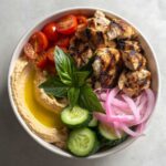 This Mediterranean Chicken Bowl with Hummus is a vibrant and flavorful dish perfect for a healthy lunch or dinner. Juicy marinated chicken thighs are grilled to perfection and paired with creamy hummus, fresh vegetables, and tangy pickled onions, creating a balanced and satisfying meal inspired by Mediterranean flavors.